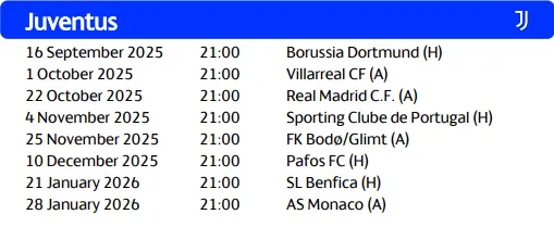 虎扑08月30日讯 欧足联公布了新赛季欧冠联赛阶段赛程,尤文图斯赛程如下: